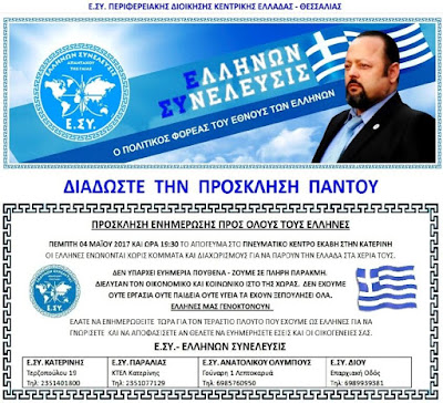 ΟΜΙΛΙΑ ΣΤΗΝ ΚΑΤΕΡΙΝΗ ΑΠΟ ΤΗΝ Ε.ΣΥ.- ΕΛΛΗΝΩΝ ΣΥΝΕΛΕΥΣΙΣ