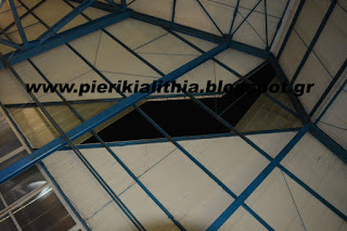 Ένα μεγάλο κομμάτι από την επικάλυψη του κολυμβητηρίου Κατερίνης και πάνω από την είσοδο που χρησιμοποιεί ο κόσμος και τα παιδιά για να μπούνε στο κολυμβητήριο αποκολλήθηκε κατά πάσα πιθανότητα από τον δυνατό άνεμο που επικρατούσε πριν από λίγο στην περιοχή.