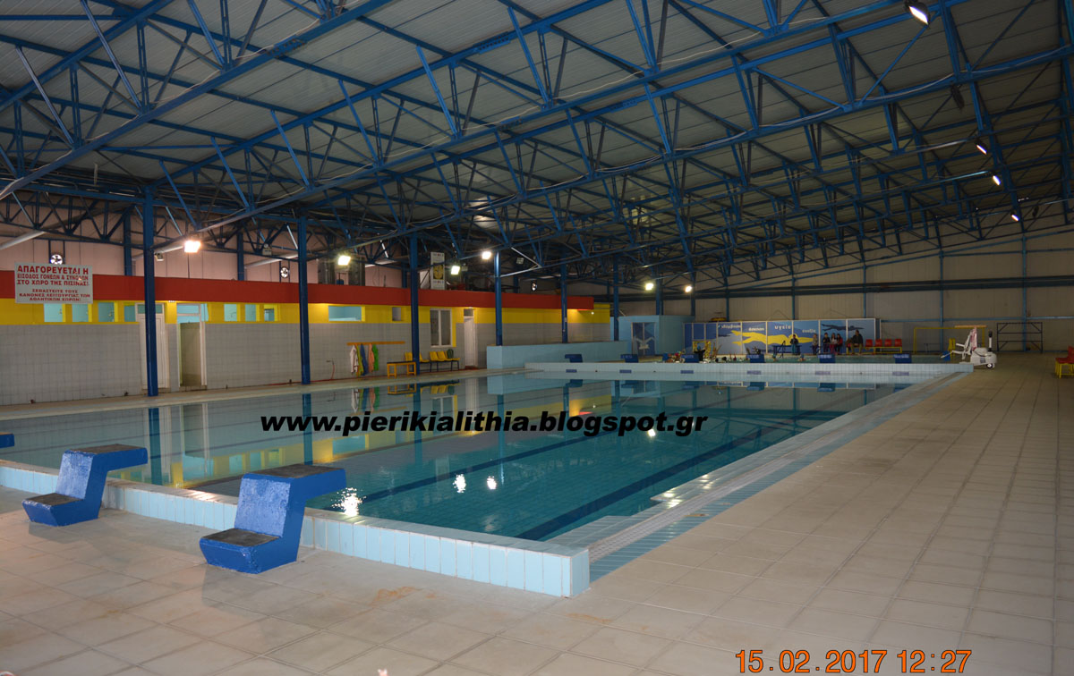 Ανοίγει την Δευτέρα 20 Φεβρουαρίου 2017 το ανακαινισμένο κολυμβητήριο Κατερίνης με ημερήσια είσοδο για το κοινό 2 ευρώ.
