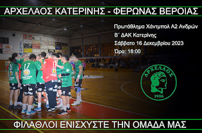 ΓΑΣ Αρχέλαος Κατερίνης - Φέρωνας Βέροιας (Σάββατο 16/12/2023).